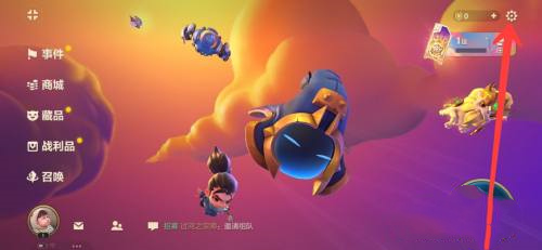 2、金铲进入游戏主界面,铲之成图点击右上方的战福设置按钮。