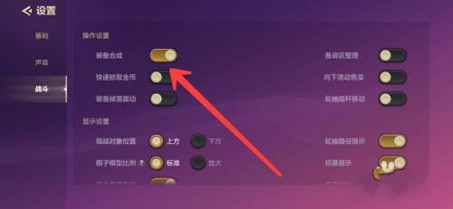 4、来到操作设置页面,点击开启装备合成功能。