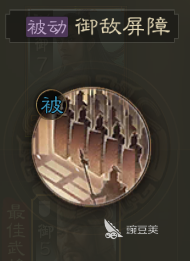 御敌屏障:这个是A级的被动战法,效果是让周身四格范围内的友军获得8%免伤,这个数值还是升满之后才能达到的,虽然数值看起来并不高,但考虑其本身的获取难度较低,所以用于前期过渡仍然还算是不错的选择。