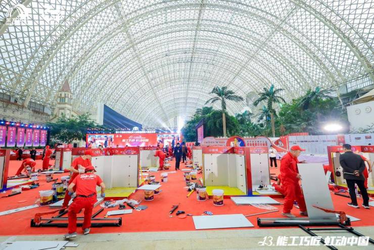 总决赛现场,来自全国各地75位经过层层选拔的顶尖工匠与13位历届精英选手同台竞技,大赛设置多个单元项目,旨在系统检验和提升工匠在方案设计、产品搭配与施工执行等方面的综合能力。经过数小时激烈角逐后,大赛评选出符合行业标准的优秀工匠。