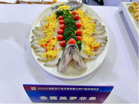 在琳琅满目的展示中,罗非鱼作为茂名着力打造的百亿级产业,被置于聚光灯下,成为当之无愧的明星产品。展台上,十二道以罗非鱼为原料精心烹制的创意菜品,从鲜嫩的鱼片、弹牙的鱼丸,到新颖的罗非鱼饺子、罗非鱼面包,让与会来宾直观感受到了这条鱼从“池塘到餐桌”的百变风味与精深加工实力。