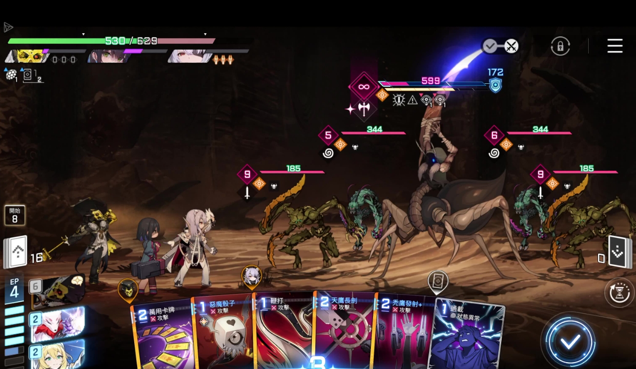 当队伍中两名角色完成属性强化之后,就可以开启总攻模式,集中使用高伤害的单体攻击卡牌,迅速地把蓝壶的剩余生命值给消耗掉。蓝壶的攻击频率会明显增加,间隔变短,所以玩家要特别注意治疗资源的使用。蓝壶进入残血状态的时候,治疗类卡牌的及时使用就显得非常重要了,要根据实际情况来灵活地使用,保证全员存活。配合斩杀机制的卡牌,在蓝壶血量低于一定数值的时候会触发额外伤害,可以很快地结束战斗。