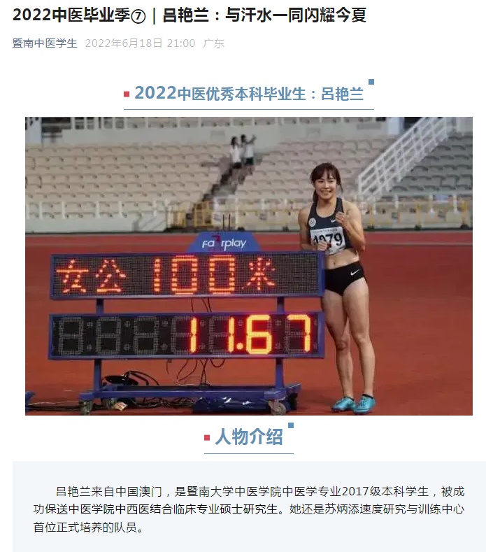 这是吕艳兰本科毕业时,暨南大学中医学院公众号对其的介绍