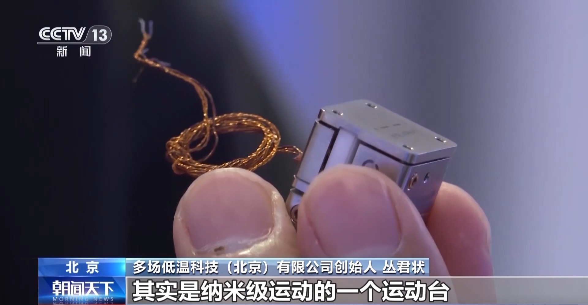 多场低温科技(北京)有限公司创始人 丛君状:我手里的这个产品其实是纳米级运动的一个运动台,整个行程大概可以走三五个毫米的距离,每一步就是二三纳米,所以它的精度非常高。像半导体、医疗机器人、卫星的通信,包括很多的高端科研仪器、高端分析仪器都会用到。
