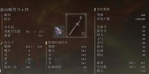 4、相比其他小曲剑,山贼弯刀这把武器后期面板更高,再加上出色的出血累积,让它在短时间内打出的伤害极其恐怖,八周目都能够随便秒boss,综合考虑下,山贼弯刀就是双持跳劈最优秀的武器。