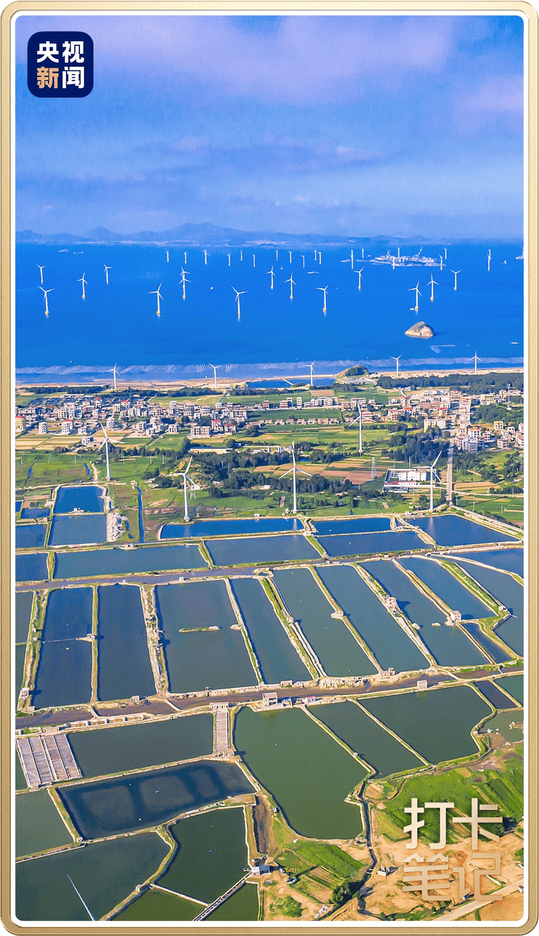 △碧海、沙滩、田园与风车构成的莆田海景。
