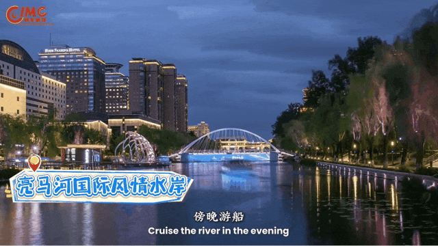 and marvel at the Liangma River night view amidst tennis-themed lights