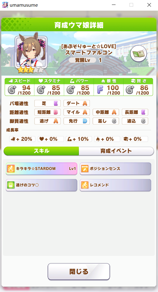 首先是娘新丸善斯基,作为初始卡池中就存在的马好萌新三星马娘,丸善斯基的逃马推荐获取率很高,即便没有抽到也可以用新手赠送的三星角色兑换券兑换。丸善斯基的基础属性非常不错,在训练时有着百分之十的速度和百分之二十的智力加成,符合目前主流的智速流训练方式。