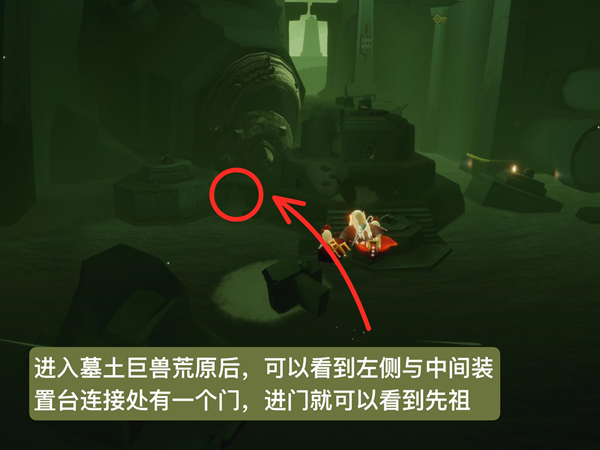 1、来到墓土的一龙图,在机关台下面找到先祖。