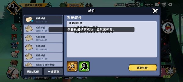 4、奖励就会发送到邮箱中,记得去点击“领取奖励”。