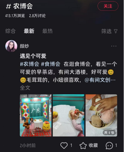 线下的火热在线上有了生动的反映。记者检索小红书发现,仅“农博会”话题下便有2.8万讨论,413.1万浏览。