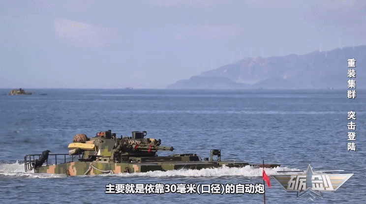 05式两栖步战车有30毫米口径的自动炮,射速非常快,在发射的瞬间,就可以倾泻大量的弹药,形成非常密集的火力压制。同时,它也可以发射烟雾弹、导弹,可以说是一专多能。