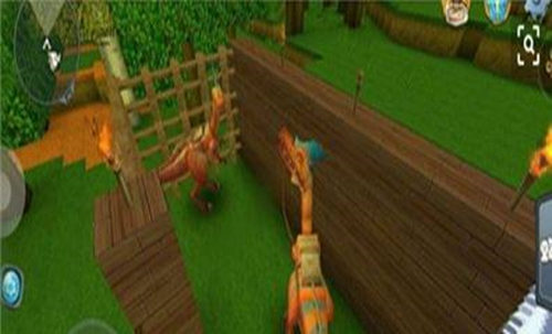 4、发现迅猛龙后,可以站在土块上,再用武器远程攻击它。