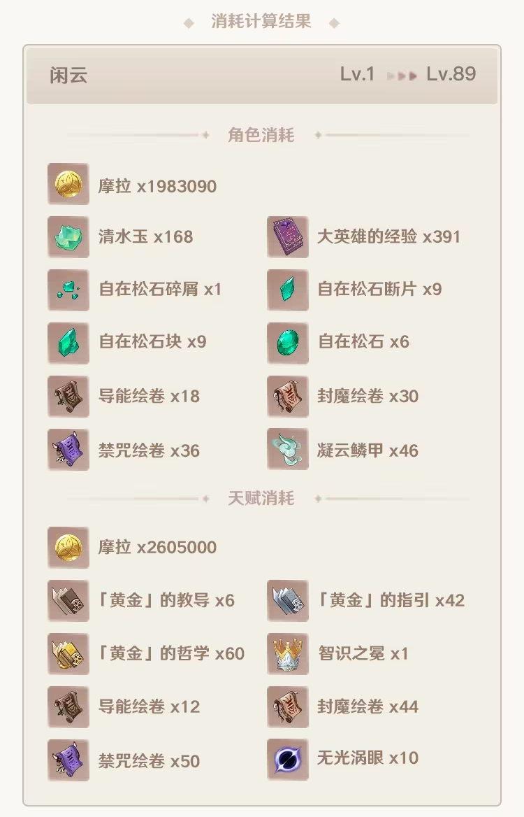 10级:黄金的哲学*16、禁咒绘卷*12、无光涡眼*2、智识之冕*1.摩拉*70w