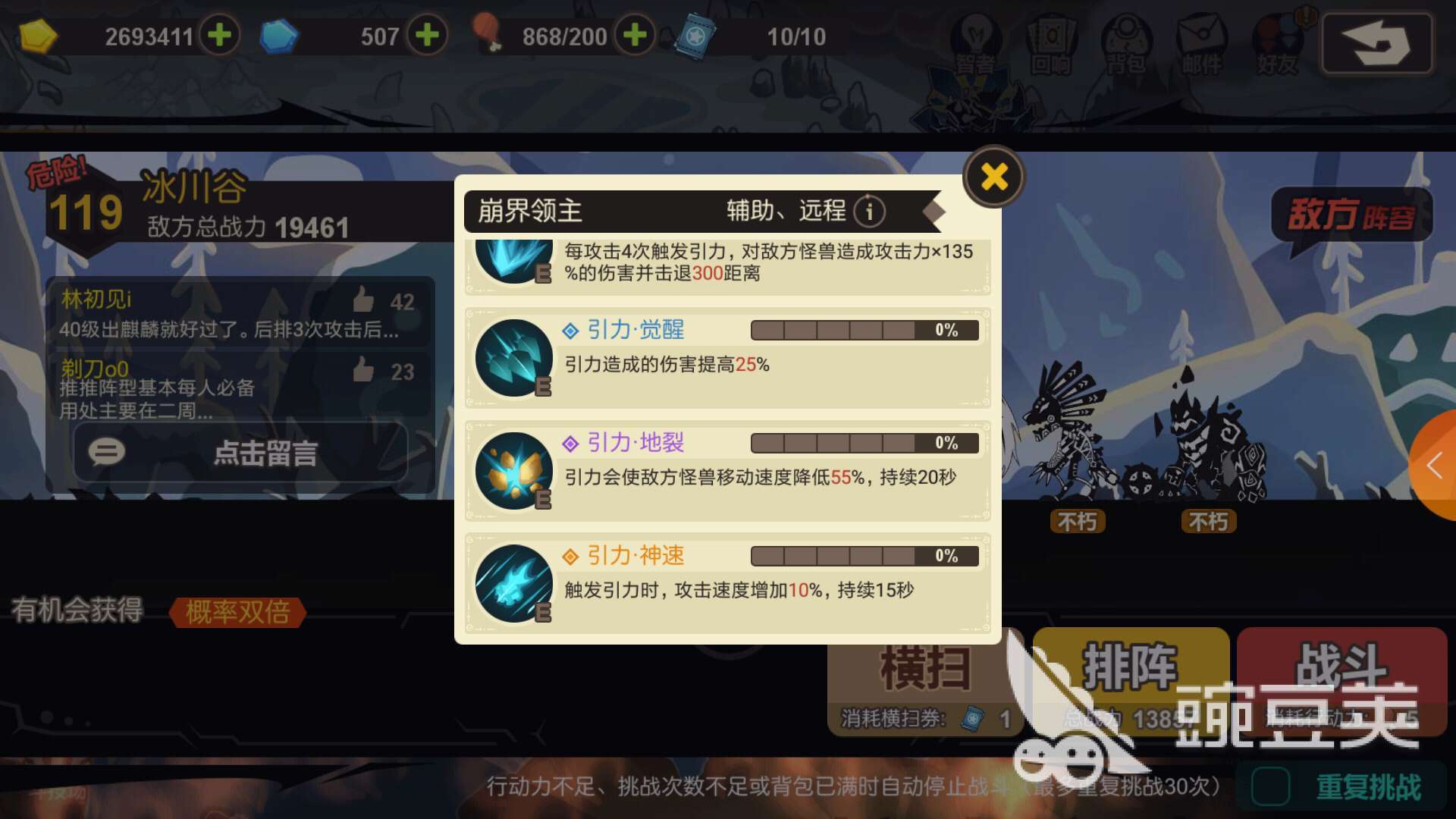 崩界领主技能能够推走前排,使得后排暴露出来。不仅如此,还能使敌方前排身重一个20秒超长时间得减速,使得前排很难走到应该站立得位置。总结:崩界领主必须尽快的消灭。