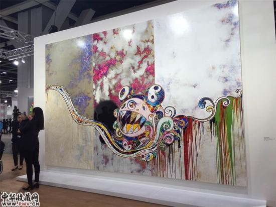 ▲ 贝浩登画廊推出的村上隆2016年新作《Title to be determined》 刚在立木画廊与白立方画廊举行联合个展的英国艺术家翠西·艾敏(Tracey Emin)在本次艺博会上同样备受欢迎。立木画廊推出的《In Solitude》以180万英镑售出。而白立方画廊推出的绘画作品《Its how it is》售价为30万英镑,雕塑《I Love you》售价为12万英镑。白立方画廊香港区总监周晓雯在接受《艺术新闻/中文版》表示,从目前所见,如翠西·艾敏这样在亚洲做过展览的艺术家比较受到藏家的关注。