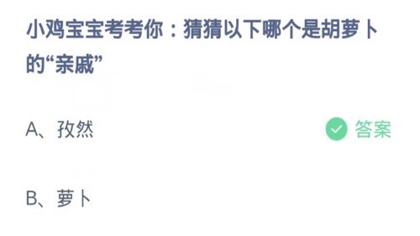 以上就是猜猜蚂蚁庄园哪个是胡萝卜亲戚的答案,这下大家可以放心了。胡萝