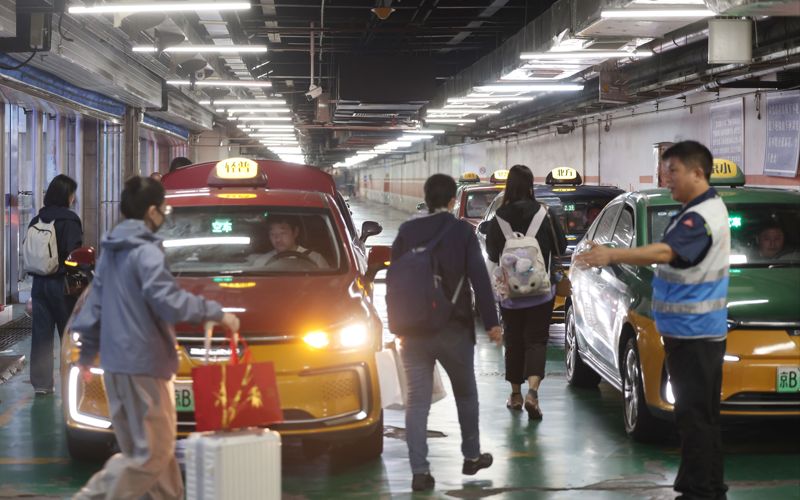 北京西站地区北负二出租车调度站,旅客与出租车快速“对接”。新京报记者 王贵彬 摄