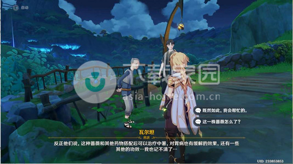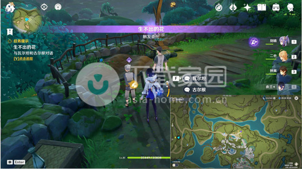 1、传送到须弥城,来到菜地跟瓦尔坦、古尔根对话。