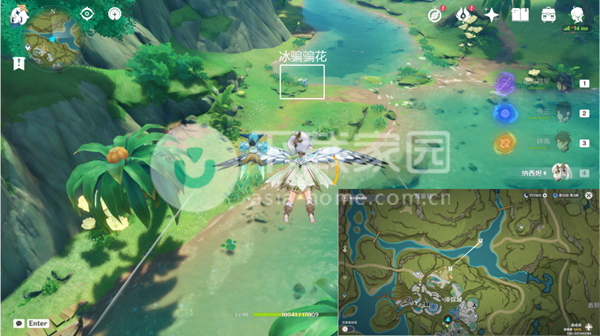 5、朝着东北方向飞过去,在河边找到冰骗骗花。