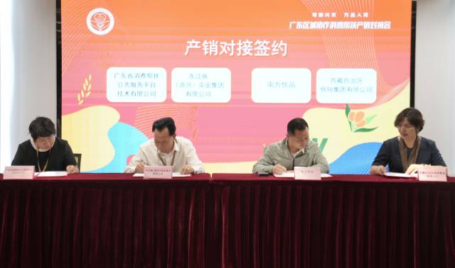 对接会上,广东省消费帮扶公共服务平台技术有限公司、南方优品、县博会、广州绿野鲜品供应链有限公司、广东迎宾馆,分别与东江鱼(资兴)实业集团有限公司、西藏自治区供销集团有限公司、贵州蔬菜集团有限公司、七台河市农投文化产业有限公司、龙岩农业发展有限公司签订战略合作协议,湾区采购商将围绕产销对接、渠道拓展、市场推广等推动相关协作地区消费帮扶产品销往大湾区。