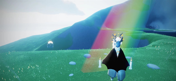 4、圣岛降落到有水母洞的彩虹草地上,这里有一堆小蜡烛。