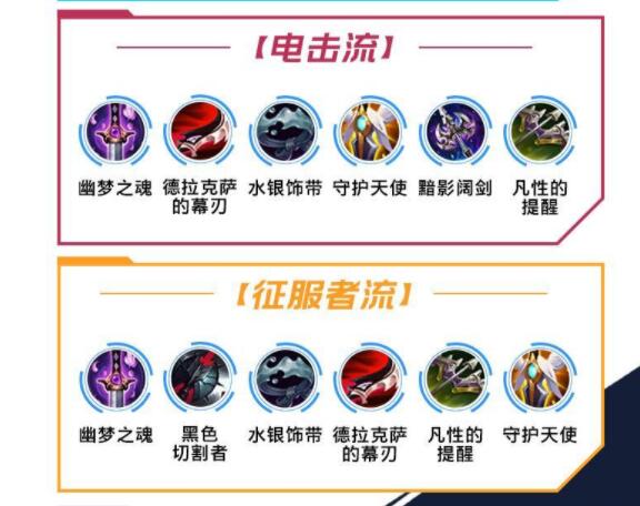 1、游劫电击流出装顺序:幽梦之灵+幕刃+水银饰带+守护天使+暗影阔剑+凡性的出装提醒