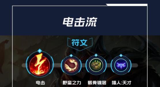 1、出装劫符文推荐一:电击+野蛮之力+骸骨镀层+猎人天才