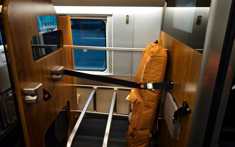 旅客线上预约成功后,可随车携带雪具并存放在列车指定位置,实现人和雪具同行。袁旭冉 摄