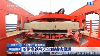 铺轨机通过机器臂抓取枕木并整齐铺在道砟上,铺轨经三次收轨调整使钢轨精准入承轨槽,冰城日铺轨量达2.5公里。到林都仅