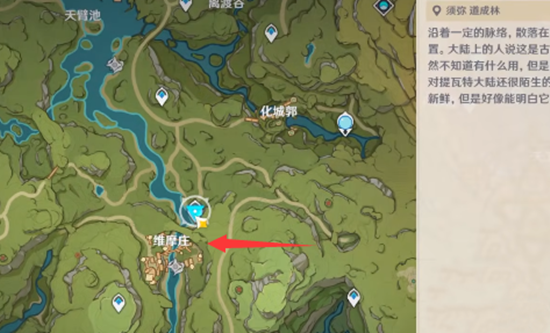 1、打开须弥地图,片获传送到维摩庄上方的取方锚点。