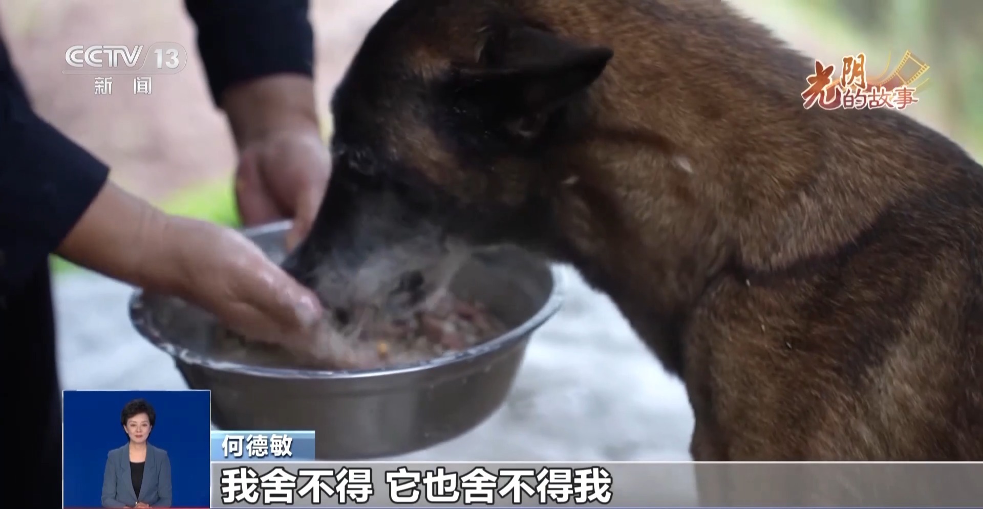 何德敏:我们这十多年的感情,像父子关系一样,对它严,又对它爱。看到它冲锋在前完成任务的时候,我就知道它是我的好搭档,我的好战友,我没有其他的想法,我就想和它在一起协同作战。