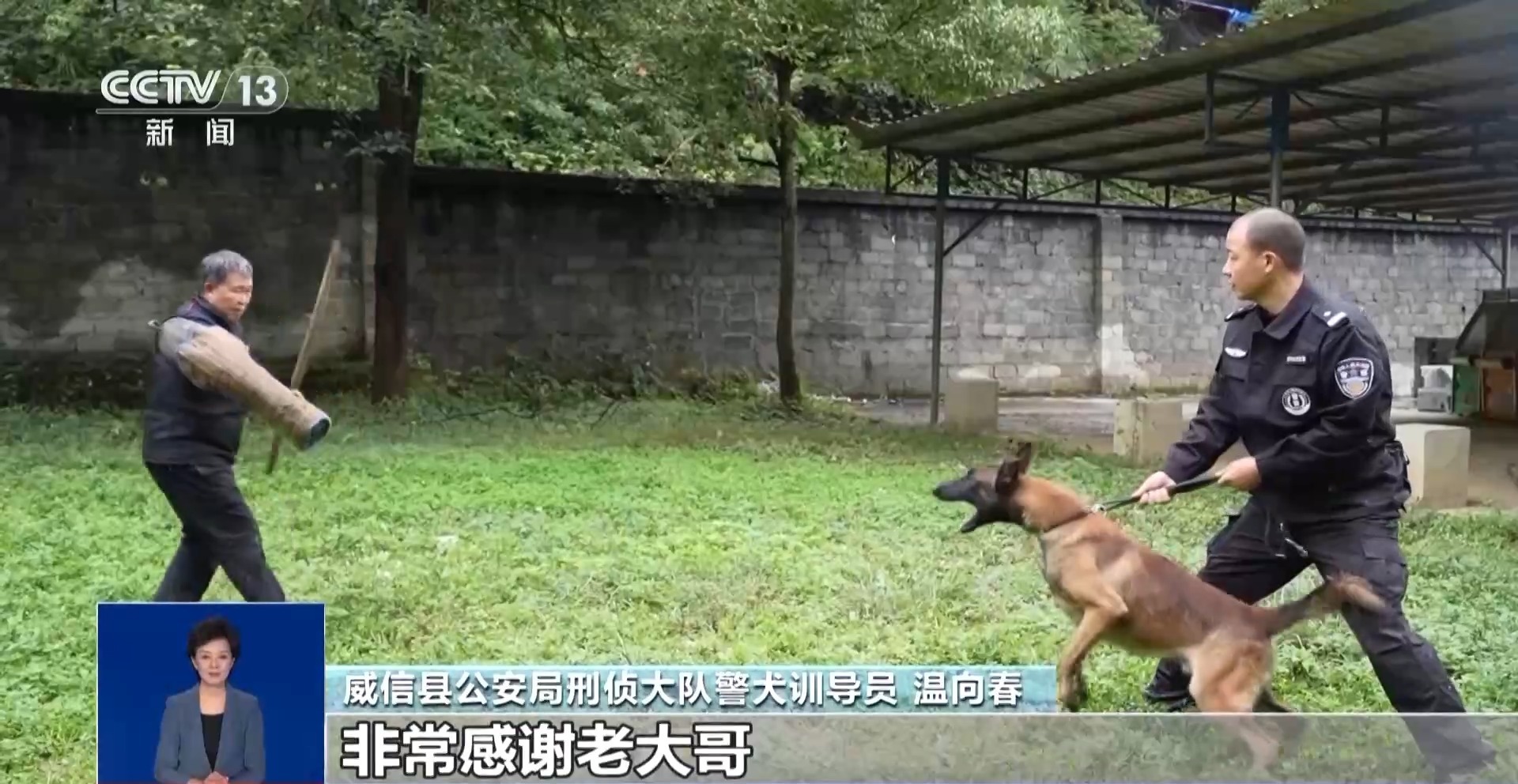 威信县公安局刑侦大队警犬训导员 温向春:老何退休了他也会时常过来指导我,教我一些东西,一直关心着我们这个基地的发展,非常感谢老大哥。