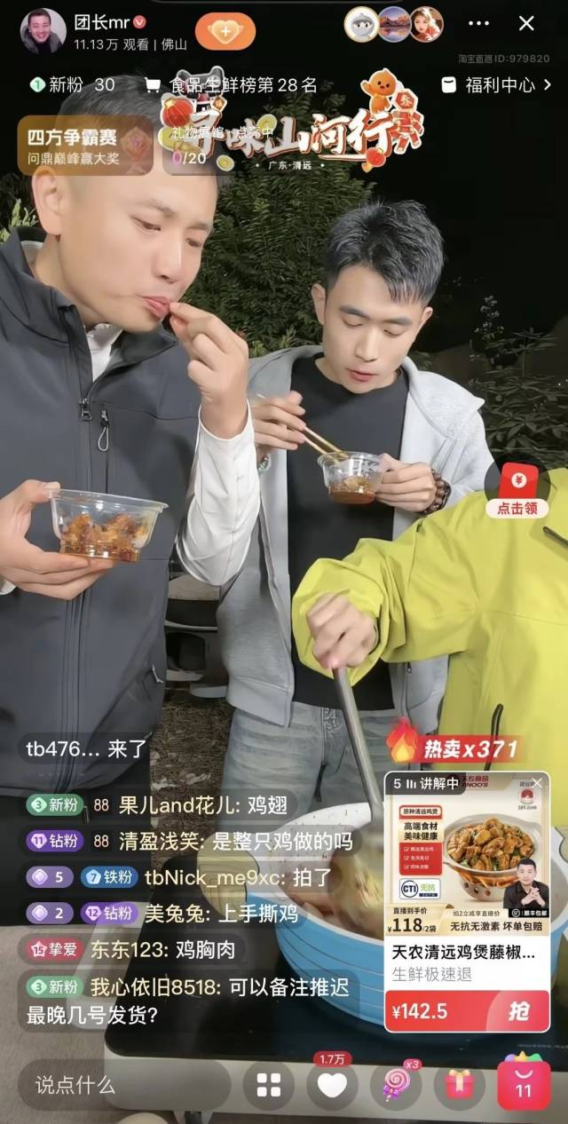 去年12月19日,“五大百亿过大年”——“清远好风土”广州·北京路品牌展演产销对接活动成功举办,淘宝天猫集团、天农食品共同发布了《淘宝天猫·寻味山河行清远鸡传播直播行动计划》。2025年新年伊始,淘宝天猫·寻味山河行年货季紧随其后,于1月3日走进天农食品生产基地,4小时内单场GMV超过20万。