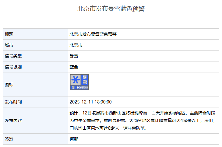 新京报讯 据北京市气象局消息,北京布暴北京市发布暴雪蓝色预警。市发色预