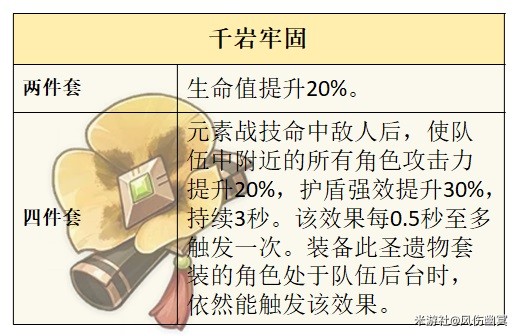 ·攻击时队伍里高于半血的角色会扣血,根据扣血角色的数量提升三只召唤兽的伤害,刚好一队4个角色可吃满。(帮助没有自我耗血的角色触发需要耗血的各种武器或圣遗物)