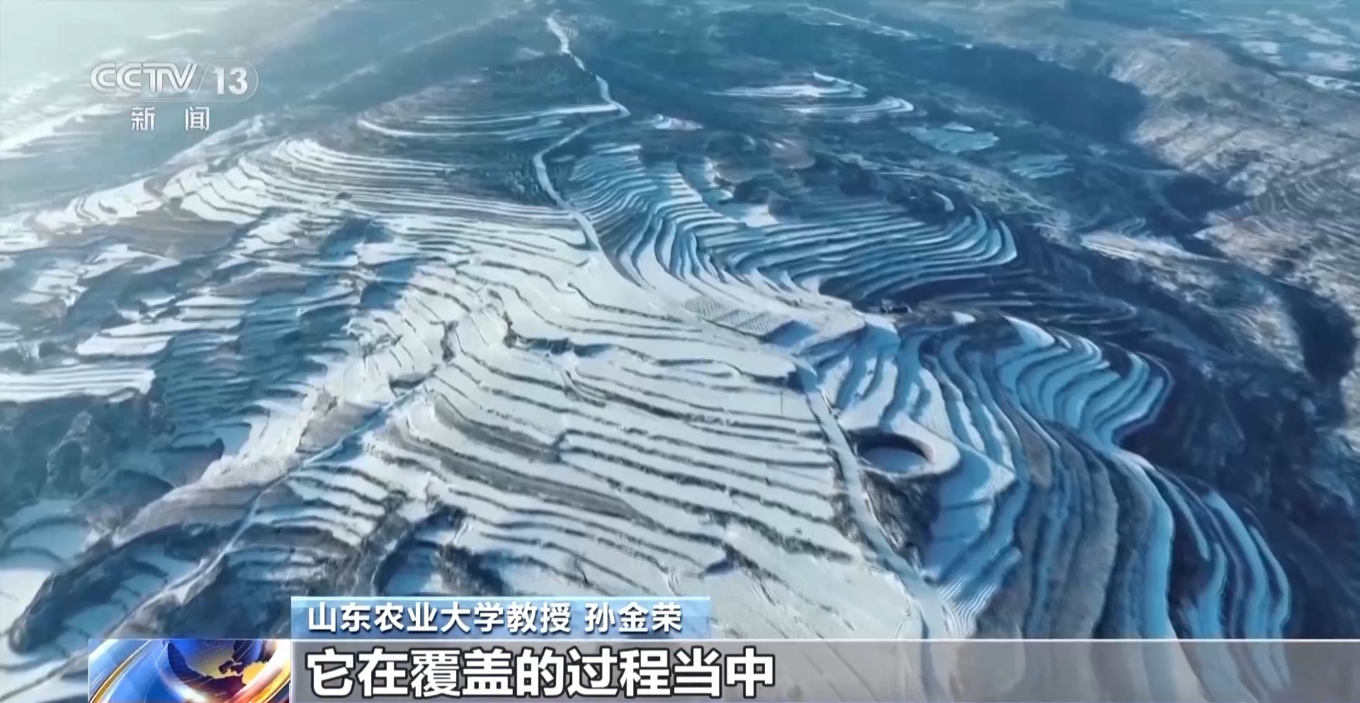 山东农业大学教授 孙金荣:我们知道这个雪是蓬松的,本身又是一个六边形的,落下来之后彼此之间有一个物理的空隙,这就是像羽绒服一样,是一个天然的保温层,它在覆盖的过程当中,本身也避免了水分在冬季的过度的蒸发,融化之后又增加了湿度。