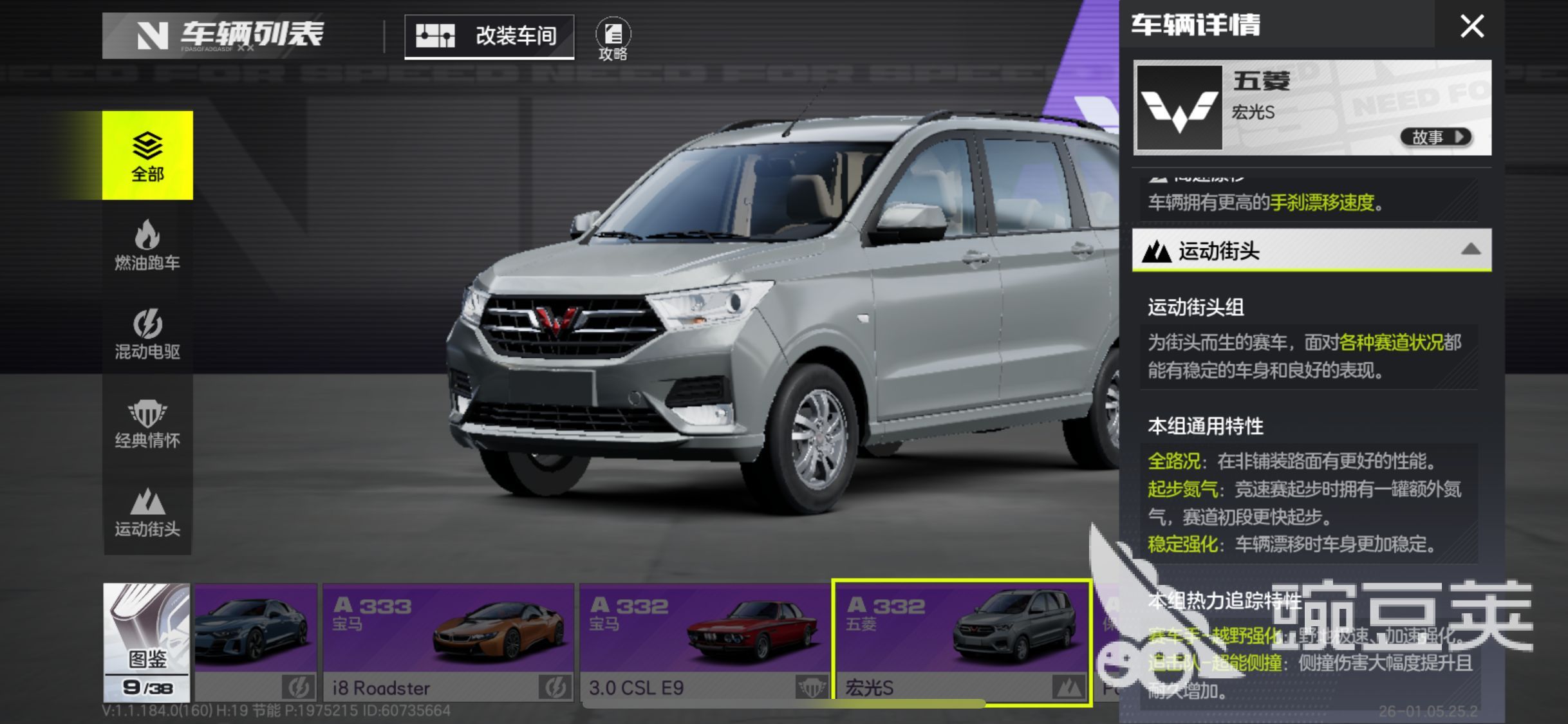 五菱宏光在极品飞车集结的定位是紫色品质的街头车,它的驱动方式是后轮驱动,因此和很多后轮驱动的车相同,它操控起来非常灵活,特别是在过弯道的时候,主打一个丝滑。除此之外,五菱宏光还有着一个独特的性能,那就是它在手刹漂移的时候可以保持较快的速度,而这就是它区别于其他车最大的特点。因为弯道漂移的时候能保持速度,无疑可以领先对手一大截的距离。