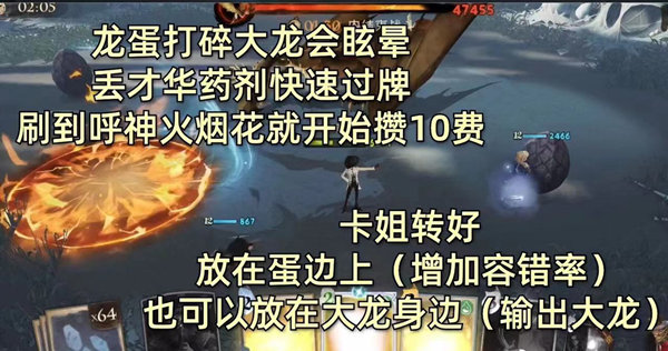 5、龙蛋被打掉后,大龙会晕眩,用才华药剂来过牌,刷到呼神烟花就攒费。