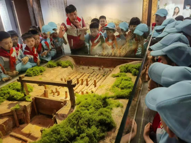 師生們以北京路千年古道為核心軸線,分批探訪千年水閘遺址、古道遺跡、金融博物館等文化地標。在北宋水閘遺址前,學生們駐足驚嘆古人治水智慧;在古道青磚上,孩子們俯身查看青磚上的車轍印記;金融博物館內嶺南錢莊的場景復原,更將“千年商都”的傳承與創新娓娓道來。講解員以“時空穿越”為主線,串聯起廣府商貿文化、水利智慧與金融變遷史,讓歷史可觸可感。