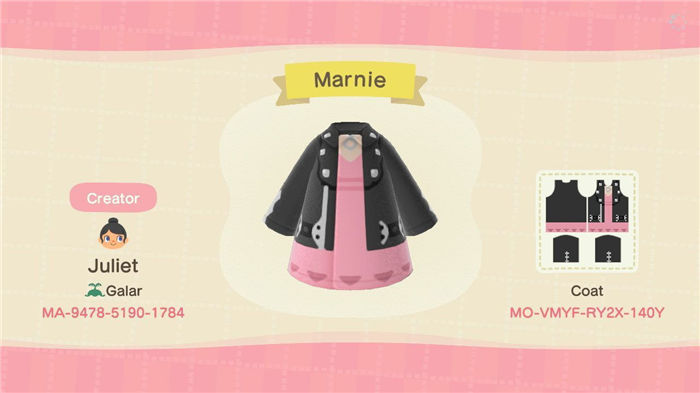 如下面这个图,【衣服代码】在右下角,如果你很喜欢这个衣服,就可以通过裁缝店的终端机输入代码获取设计图;左边是这个衣服设计师的【作者代码】,如果你喜欢某个作者设计的衣服,或者像找到这个作者设计的一系列服饰,可以通过这个代码查看这个作者已公开分享的全部服装,非常方便。