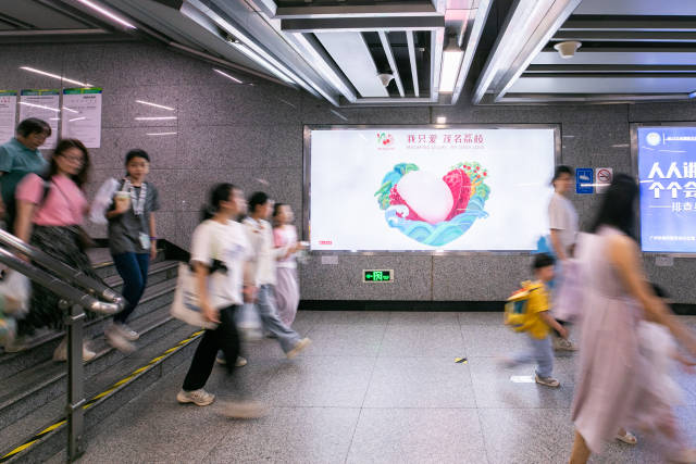 ”茂名荔枝“亮相广州1号线、2号线、3号线、5号线、6号线多个站点。