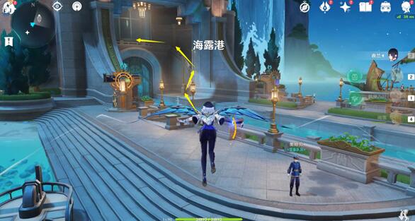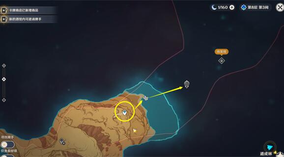 2、然后会自动解锁【须弥浮罗囿传送点】,前置点击传送点飞到海滩下面,任务借助浪船就可以抵达到枫丹港口中;