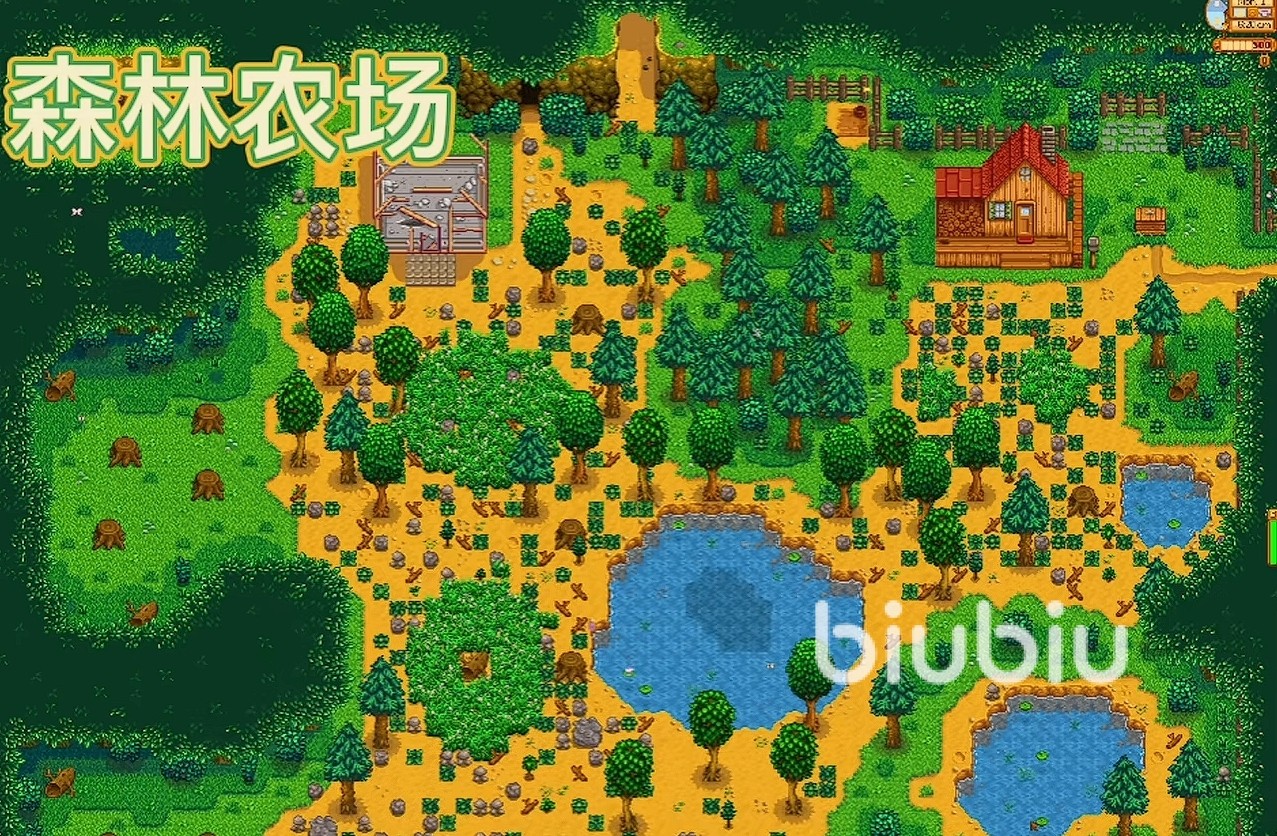 第二个便是有不少玩家喜欢的森林农场,这个农场的特点在于四周为森林树木所覆盖,可获取的硬木资源较多,并且水源较为充沛,无论是今后做畜牧业,亦或者是做养殖业,种植业都是很不错的选择。与标准农场差不多的是优先推荐各位玩家们在自己家门口进行种植业的规划,可以进行农作植物的种植。等到后期之后再进行养猪养羊等养殖业,或者说酿酒。由于区域可供的面积稍微比标准小上面一些,因此种植业可以少开一些,多以养殖业为主。