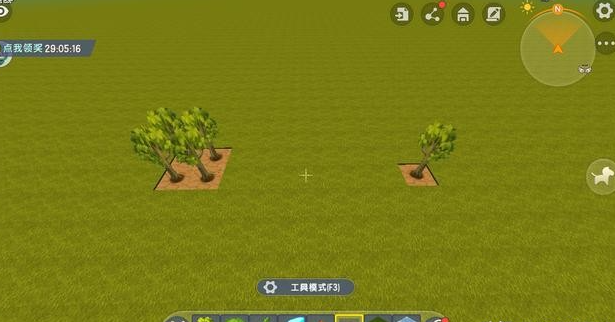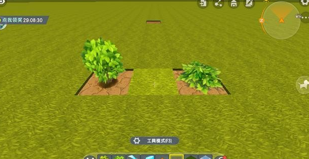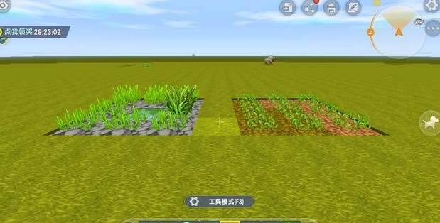以下比较一般方块和草木灰块的特效,左边是草木灰方块的农田,右边是一般的草块农田,用锄头将草块开垦成可栽培的农田,在上边撒上小麦种子。