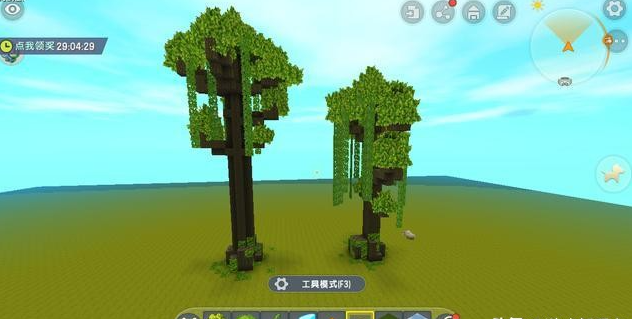 在4棵乔木树苗所有发展为第2形状后,再度上肥就构成上图左边的外型,对比较右边的独自乔木,不只高度高了一大块,就连树干都创下了迷你世界的纪录,树干居然是九个方块构成的,3*3的树干你见过吗?