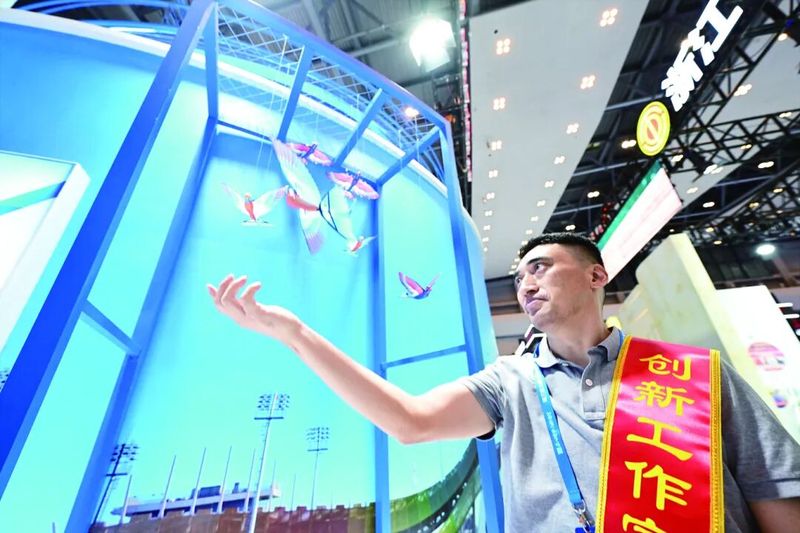 创新工作室领军人李健展示汉王仿生鸟。