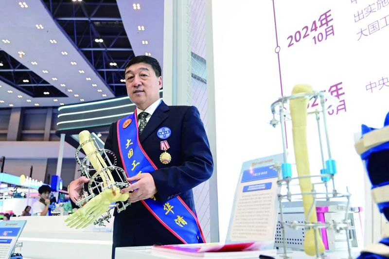 大国工匠杨华清展示康复领域相关器械。