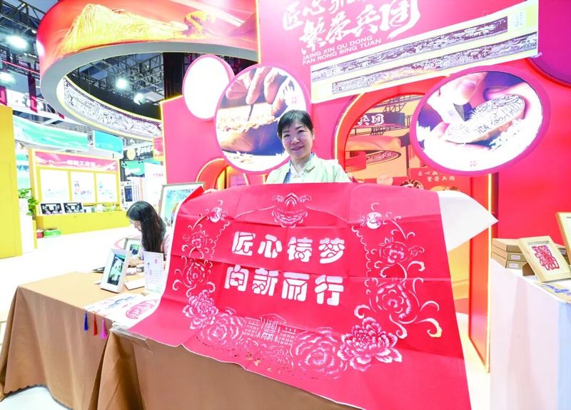 来自新疆的军垦剪纸非遗传承人以精美的剪纸作品向大会献礼。