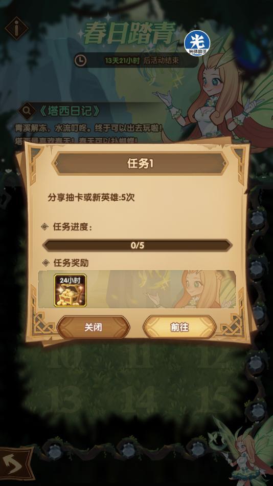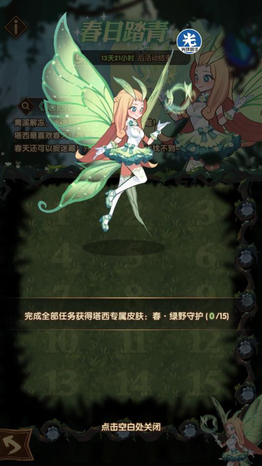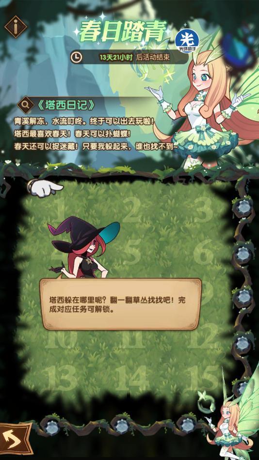 春日踏青任務(wù)是1個活动解鎖任務(wù) 一共有15塊草叢 就代表著十五個活动。